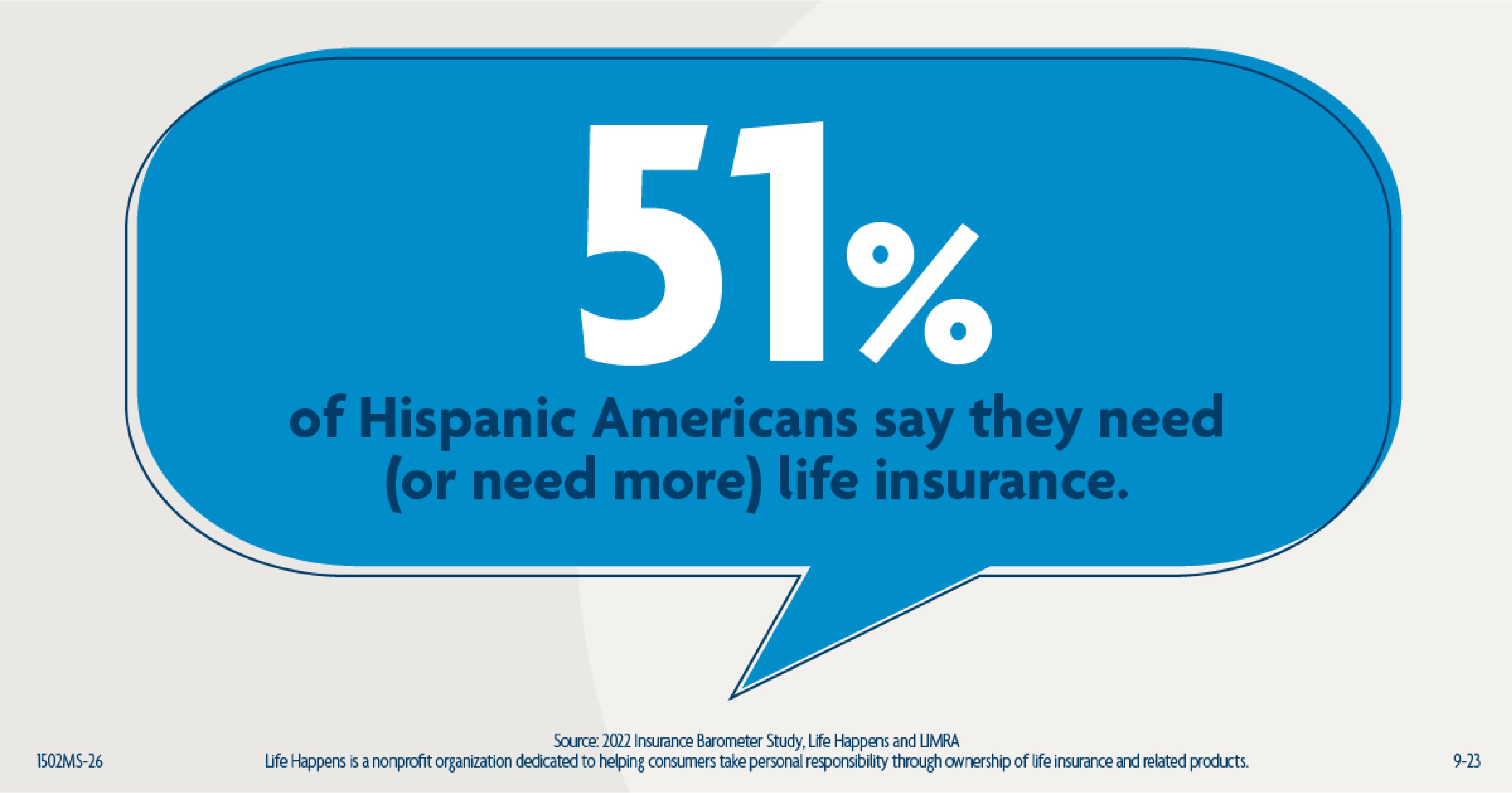 Half of Hispanic Americans say it would take six months or less to feel financial impact if the primary wage earner were to pass. Life insurance could help. Talk with me today.